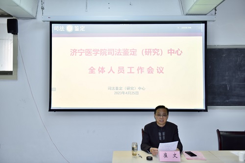 4月25日,司法鉴定(研究)中心召开工作会议。中心主任崔文主持并讲话。